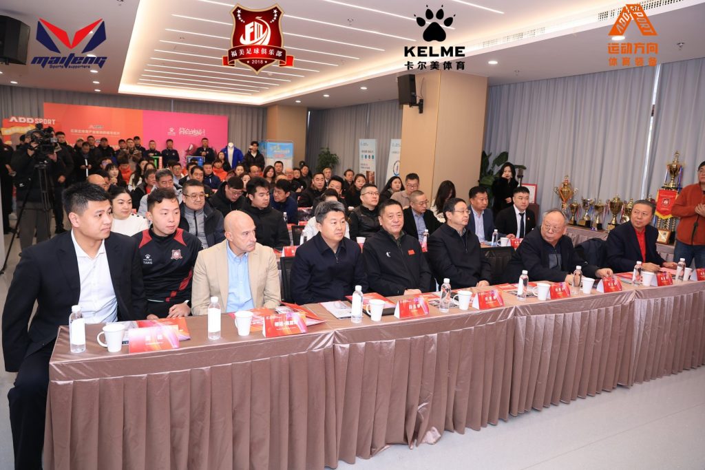 石家庄福美足球俱乐部名誉主席成英谦代表俱乐部致欢迎辞。他在回顾2025赛季勇夺五超联赛亚军这一历史性突破时,深情感谢了各级政府的战略引领、广大球迷的忠诚支持以及合作伙伴的坚定信任。他强调,这份荣耀是多方聚力、同心同德的成果。
