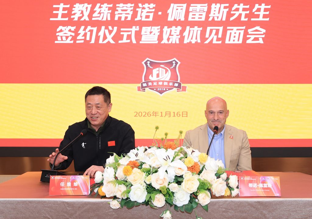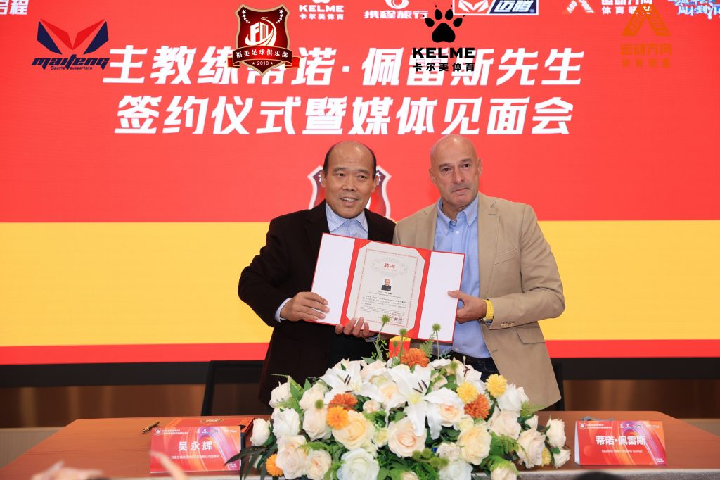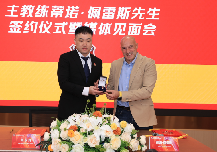 发布会重磅宣布,曾荣获欧冠四冠、拥有巴塞罗那及国家队执教经历的西班牙名帅蒂诺·佩雷斯正式出任石家庄福美足球队主教练。俱乐部董事长吴永辉先生向蒂诺·佩雷斯先生颁发了聘书。俱乐部常务副总冯维向蒂诺教练赠送了象征主教练身份的定制秒表及口哨。蒂诺·佩雷斯在致辞中表达了执教福美的兴奋之情,他称赞石家庄是一座充满活力的城市,俱乐部具备冠军潜质,他将倾注全部专业经验,打造具有竞争力的球队体系,全力带领福美冲击最高荣誉。