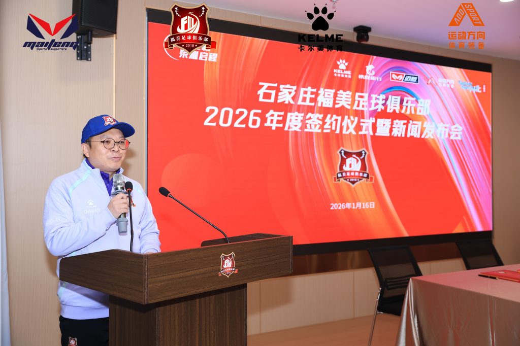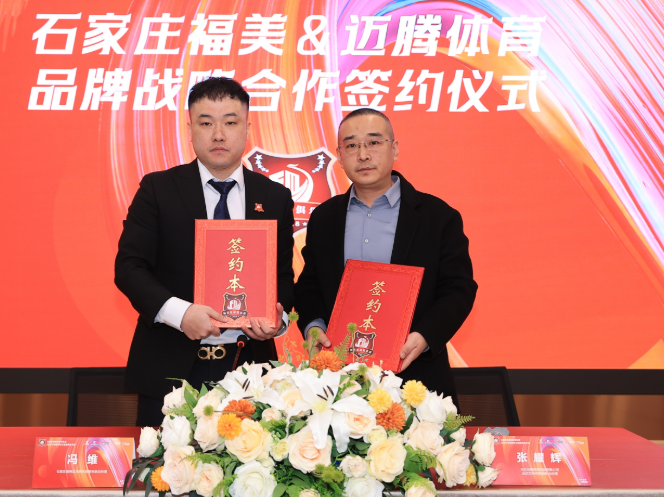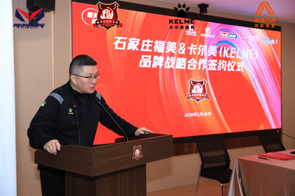 俱乐部与专业运动品牌卡尔美(中国)完成签约,卡尔美将以其深厚的足球底蕴、创新的科技研发与时尚的设计理念为球队提供高品质的比赛及训练装备,助力球队在赛场上展现最佳竞技状态。同时,卡尔美将借力其品牌影响力与设计能力,深度参与福美俱乐部品牌视觉升级与特许商品开发,将专业足球精神与石家庄本地文化特色相结合,提升俱乐部整体品牌形象与辨识度,为“城市IP”注入国际化、专业化的品牌内涵。
