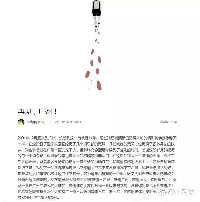 日前,李岩宣布离开广州。广州球迷制作了广州足球功勋战将的视频相送。